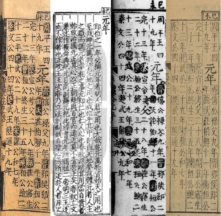 以下自左至右,本藏、永樂本(無各國紀元對照)、成化本、萬曆本。