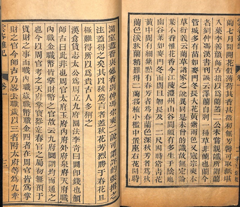 1.《雲谷雜紀》 四卷 (宋)張淏撰。1函4冊,四卷、首一卷、末一卷。線裝 19.4×12.5。配有精木夾板。鈐印:朱文「 夷陵盧氏平生珍藏」、白文「石木齋藏書」。鈐印主人湖北陳東、盧平兄弟與石木齋等,均為著名明清精善本的藏書大家。