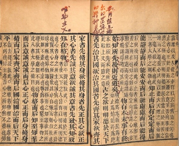 《監本四書》 清直隸官書局刊本 十九卷 1函6冊 (宋)朱熹集 竹紙 線裝 半框17.3×13.7。牌記:光緒乙巳年正月直隸官書局刊。鈐印:陳康白印,並有陳康白圈點批註。是書內收儒家經典《大學》、《中庸》一冊,《論語》十卷二冊,《孟子》七卷三冊。